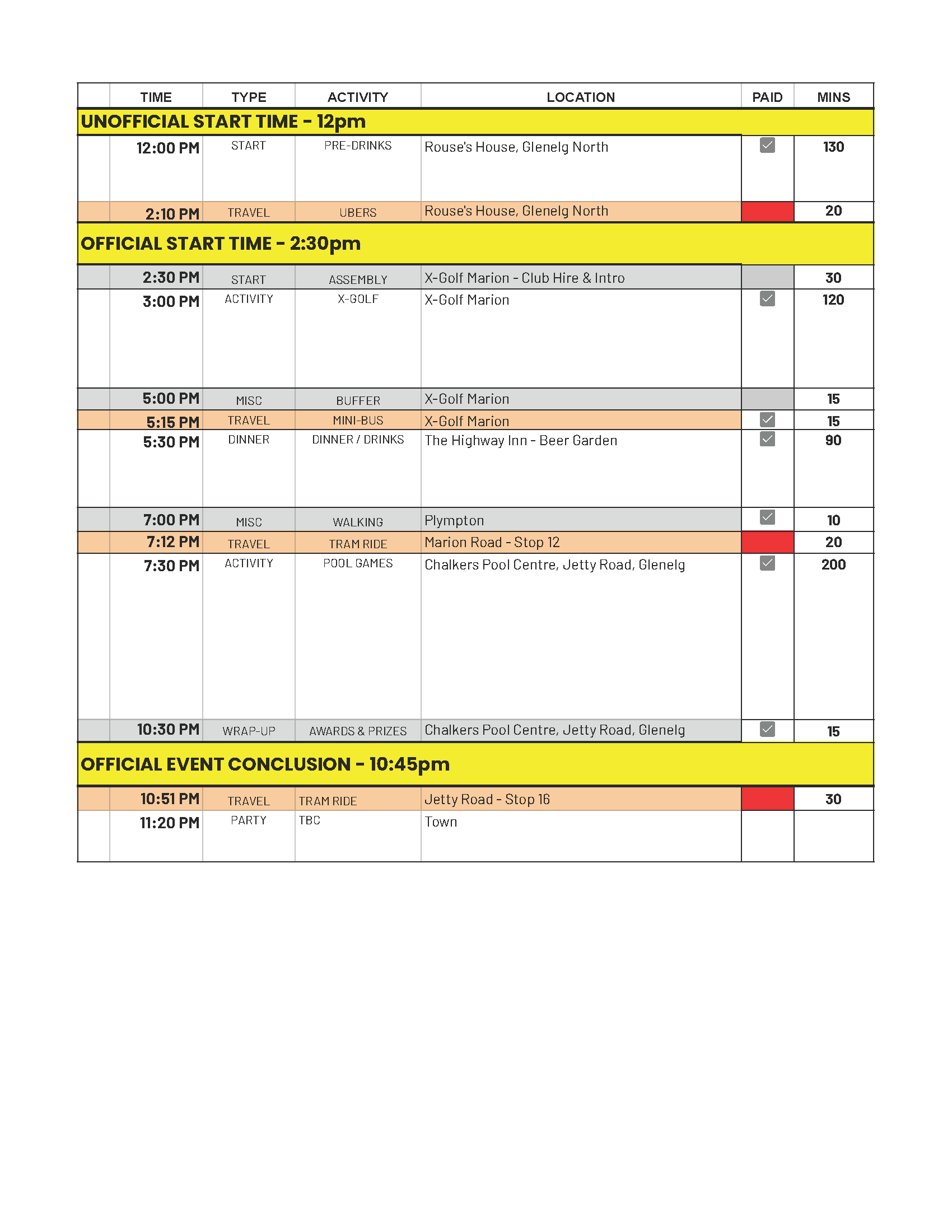 Departing 2:10pm to Venue #1 via Ubers.